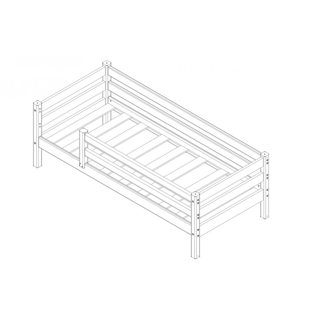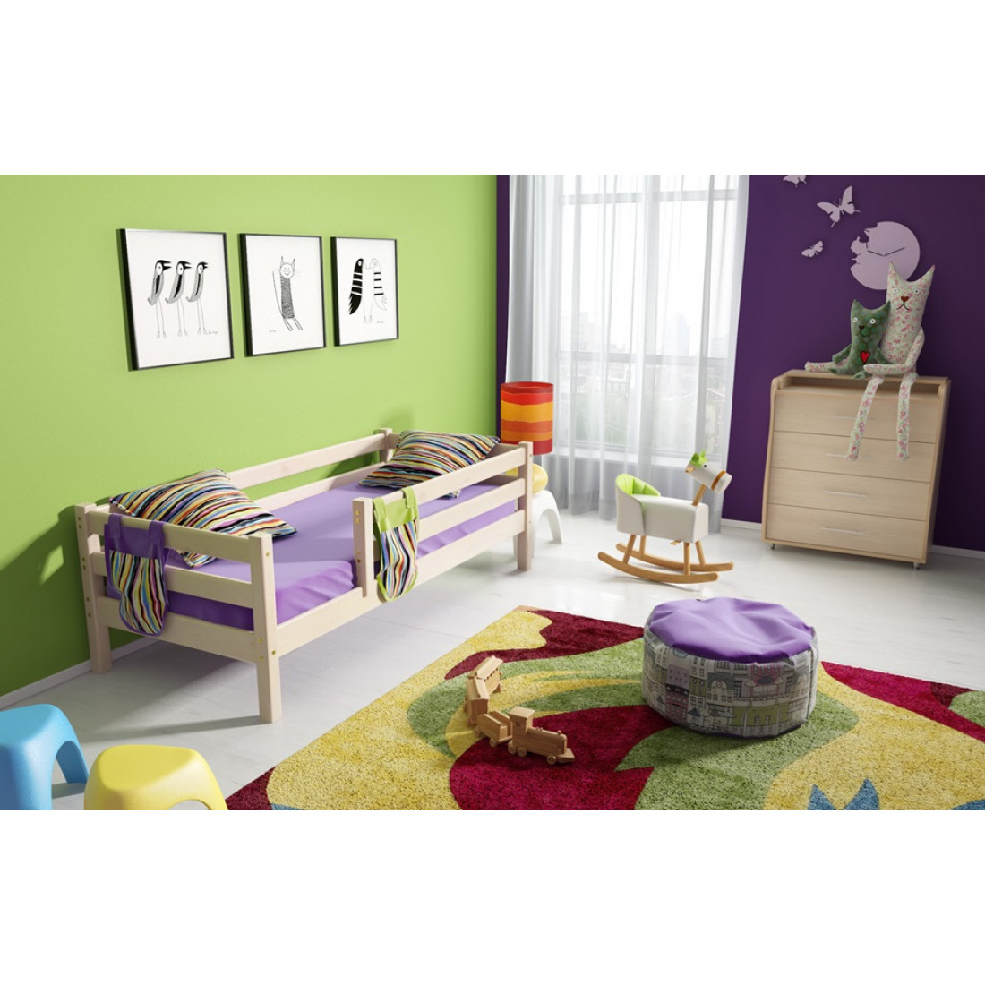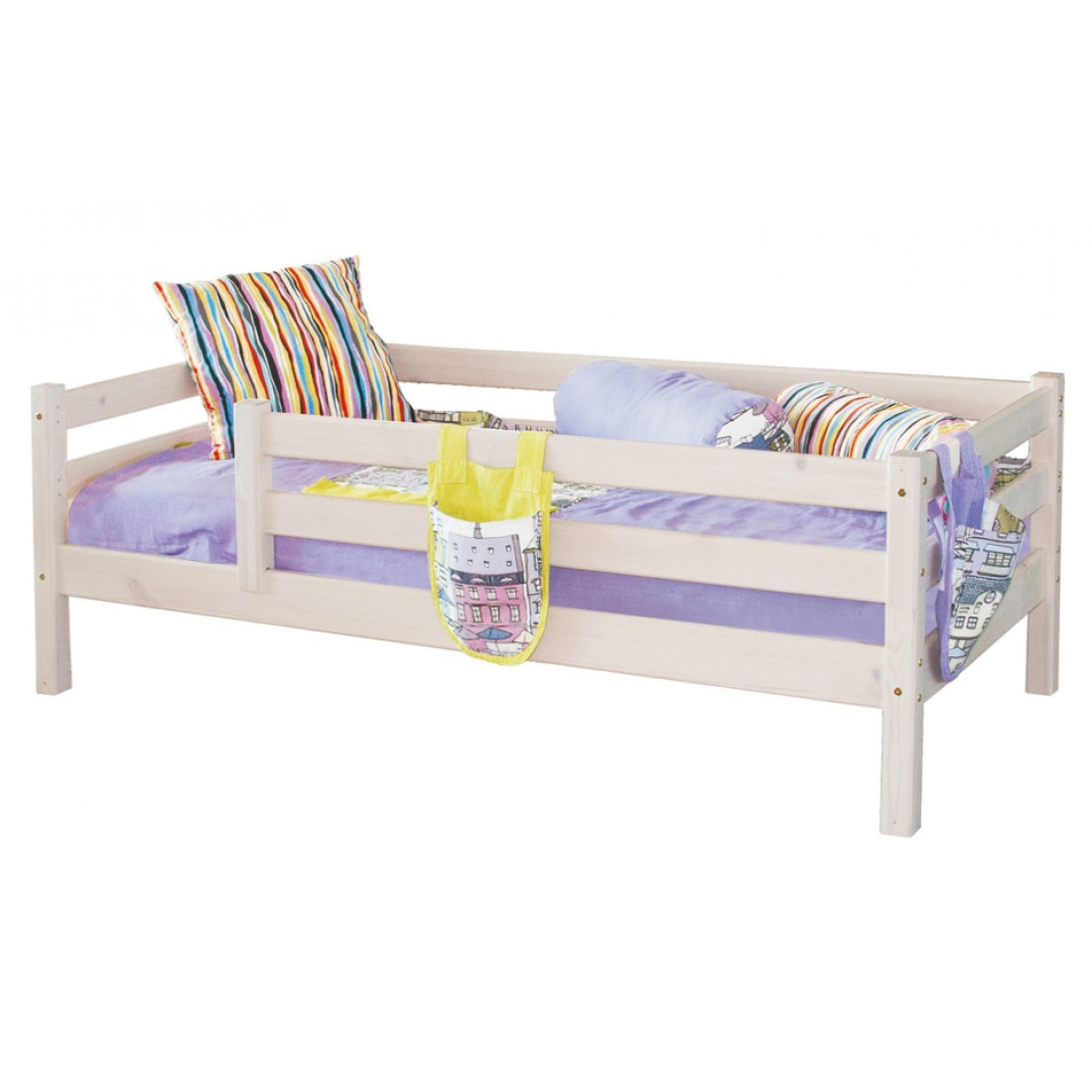 Приобрели данную модель по рекомендации родственников. Кроватка с защитой по периметру, изготовлена из натурального дерева, фурнитура качественная. Длина 2 м и защита снимается, а следовательно, на вырост. Очень функциональна и практична. Покрывала тоже заказывали, качеством довольны, расцветку можно выбрать.