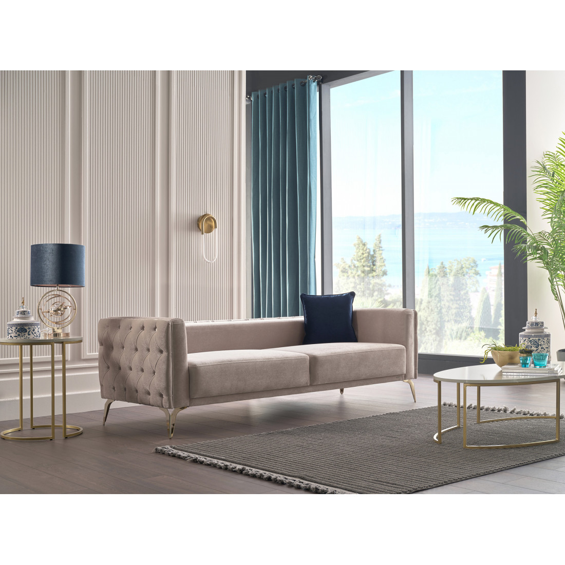 У новинки, на спинке и боковинах присутствует ручная каретная стяжка, придавая ей богатый и благородный внешний вид.