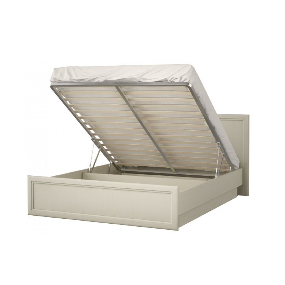 • В комплект кровати входит ортопедическое основание, состоящее из металлического каркаса и березовых ламелей, подъемный механизм.