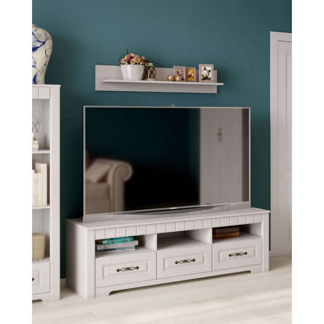 Гостиная Прованс композиция 1 от Мебельград - легкие ноты очарования сельской местности, простота линий и домашний уют - вот основные мотивы мебели этого стиля. На полках Вы сможете разместить свои любимые предметы интерьера, книги, вазы, памятные сувениры, которыми завершите образ гостиной.