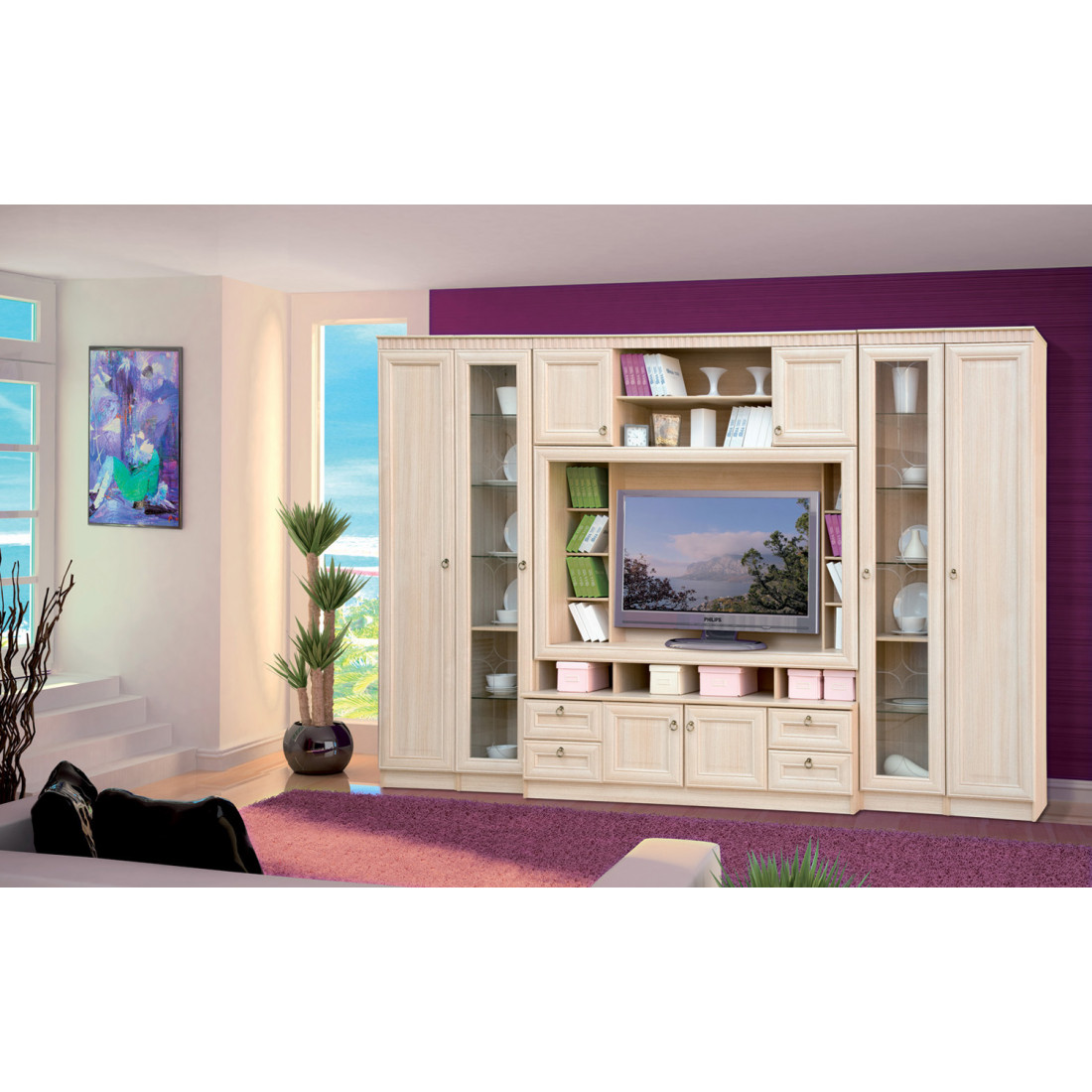 Фасады: МДФ, декор – денвер светлый, стекло с гравировкой