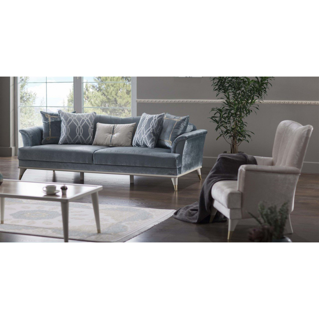 Кресло "Monreal" выполнен в современном стиле и подойдет под любой интерьер Вашего дома. Современные вертикальные линии расположились на внутренних сторонах подлокотников и спинки. Изделие покрыто невероятно мягкой и легко очищающийся тканью, а высокие ножки помогут упростить уборку в доме.