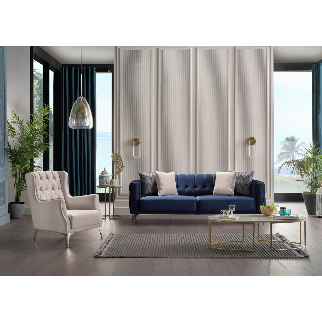 У новинки, на спинке и боковинах присутствует ручная каретная стяжка, придавая ей богатый и благородный внешний вид.