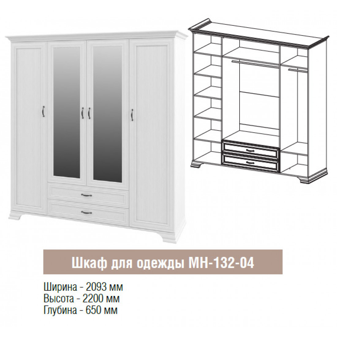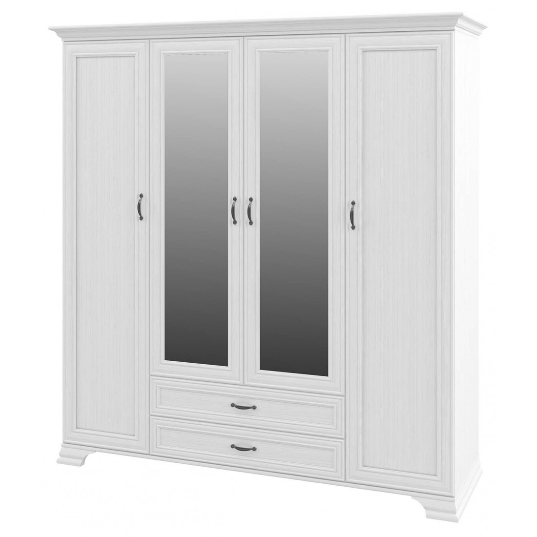 Мебель для спальни Юнона от фабрики Мебель-Неман композиция 3 - спальный гарнитур в классическом стиле с отделкой структурной фактуры, обрамленный рамочным фасадом, где металлические ручки выгодно подчёркивают стиль и изящество, всегда актуален и востребован.