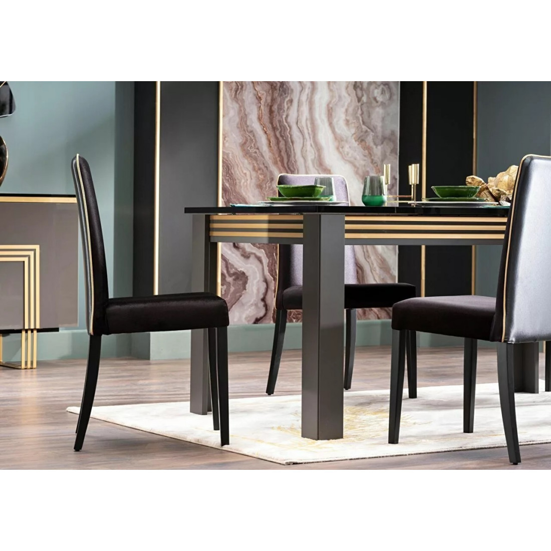 Комплект стульев для гостиной Карлино (Carlino) CARL-16-02 с прямой спинкой. Оттделка стула бархатистой тканью в комбинации с экокожей.