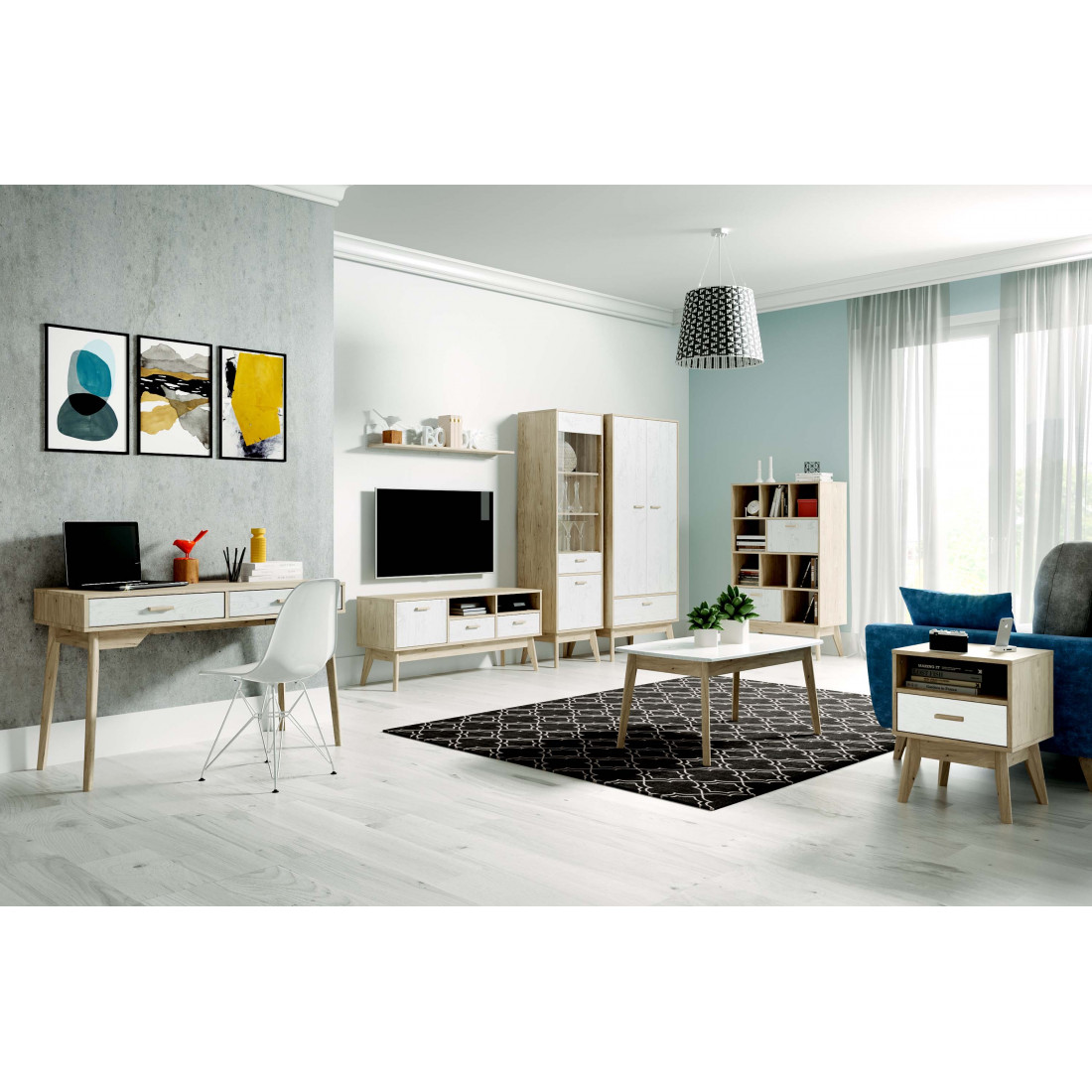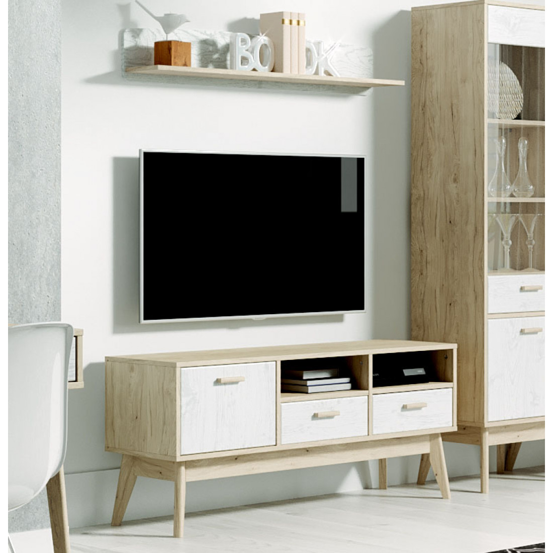 Ультратрендовая полка Калгари от Мебельград, выполненная в светлых тонах с элементами сдержанного стиля 60-х - выраженная деревянная текстура натурального дуба, четкие формы. Вся мебель очень мобильная, компактная, вызывает чуство легкости и свободного пространства, при этом она функциональна.
