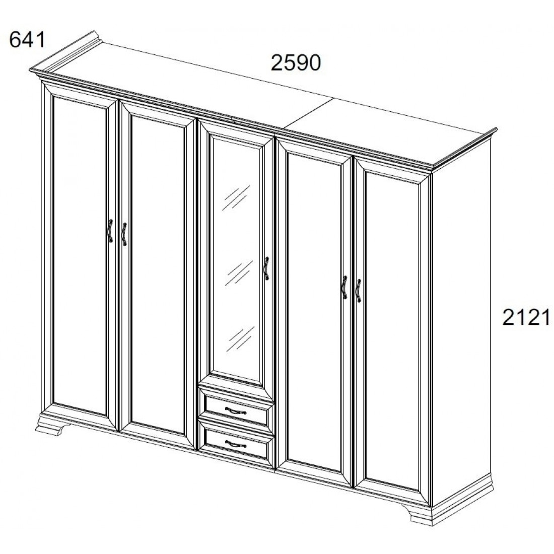 Пятистворчатый шкаф для одежды с зеркалом Тиффани 5DG2S Z крем вудлайн
