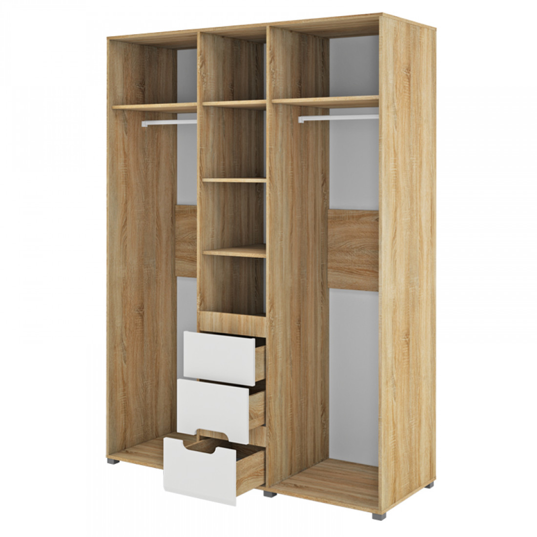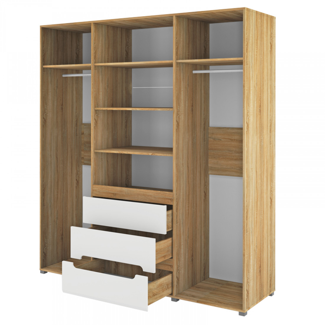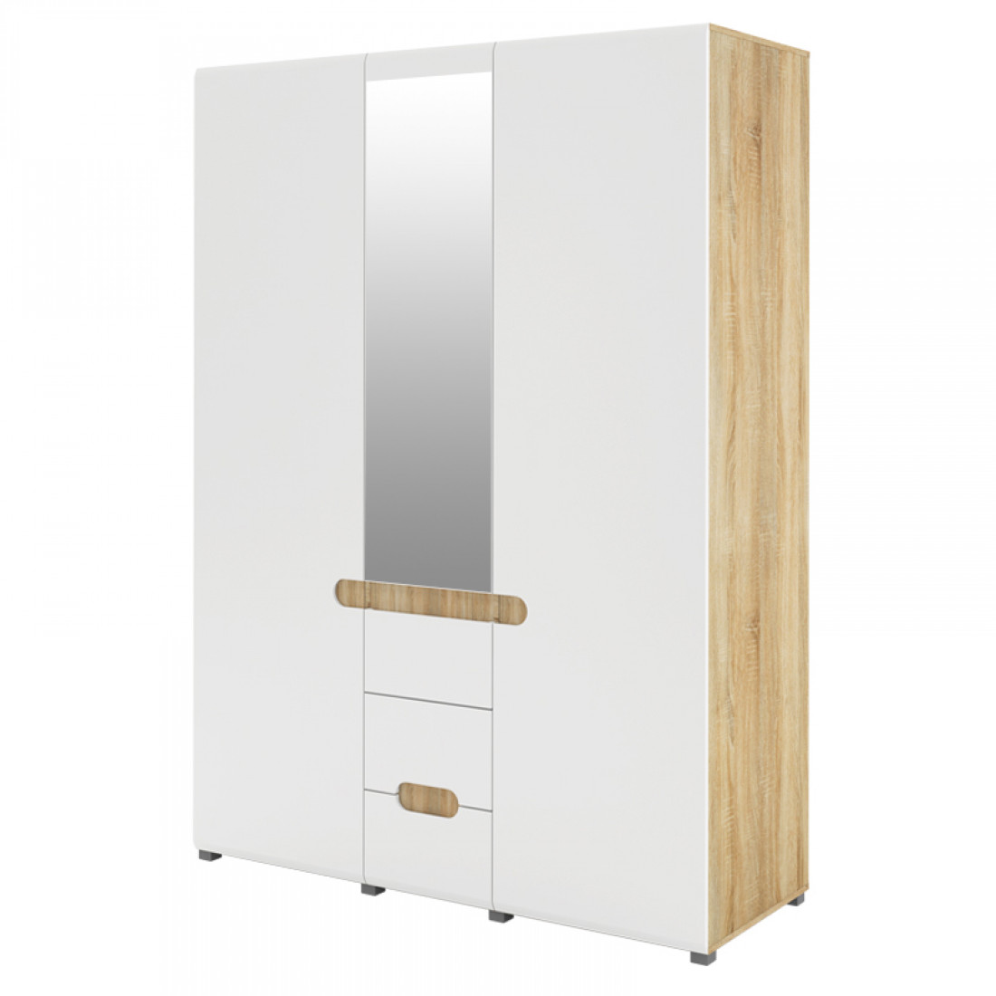 Спальня Леонардо по стильному исполнению соответствует последним трендам в мире интерьерной моды. Минималистичность дизайна и выдержанность леконичных форм подчеркивают самодостаточную красоту игры полутеней на блистательно белоснежном глянце поверхностей. Большую выразительность и многогранность белому цвету в офомлении придает ненавязчивая и благородная фактура дуба сонома – благодаря имитации шпонированных поверхностей спальный гарнитур приобретает вид более спокойного и умиротворяющего, вносит ощущение гармонии и спокойствие в интерьер.