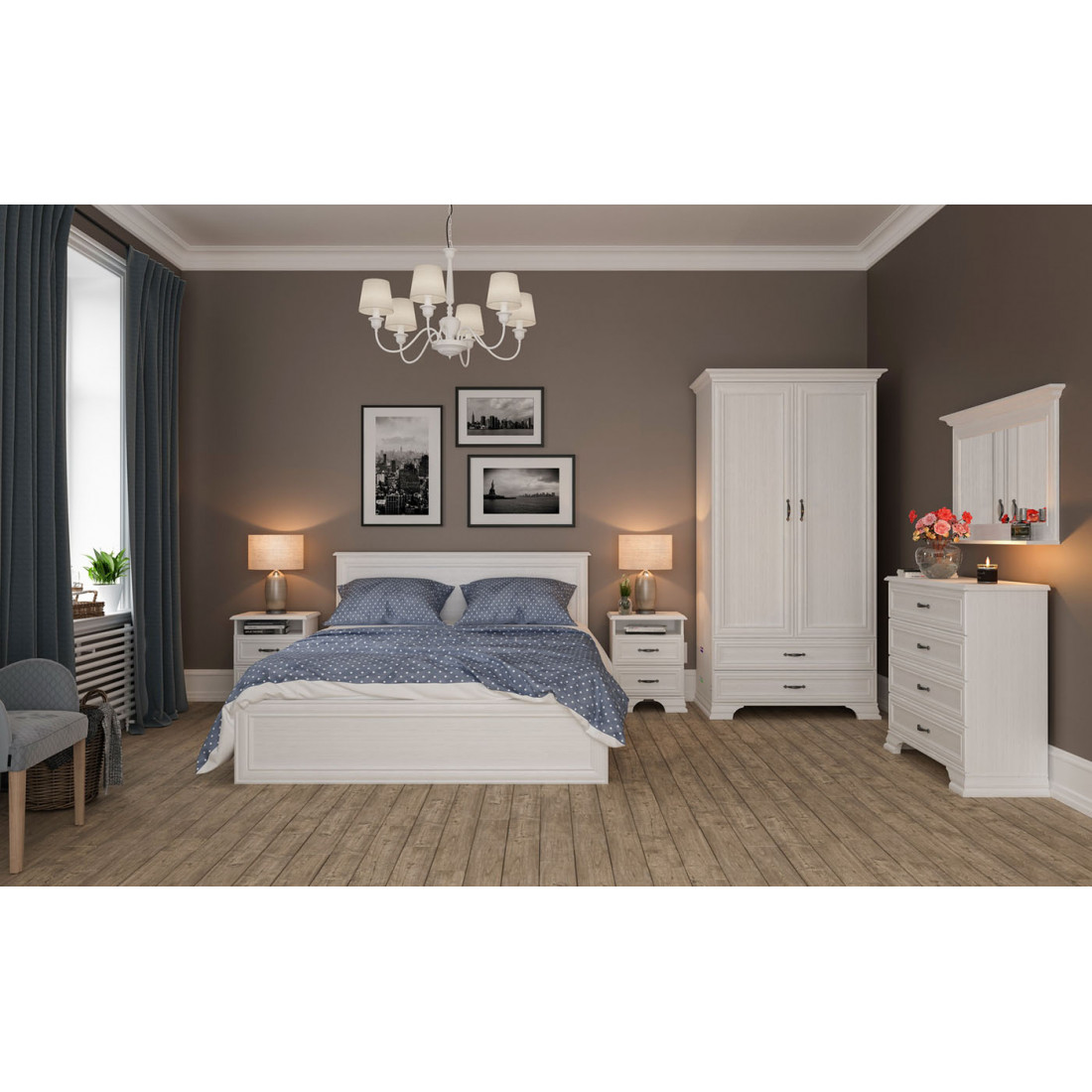 Спальный гарнитур Юнона от Мебель-Неман композиция 1 - гарнитур в классическом стиле с отделкой структурной фактуры, обрамленный рамочным фасадом, где металлические ручки выгодно подчёркивают стиль и изящество, всегда актуален и востребован.