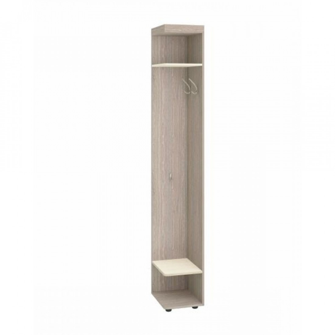 Торцевой стеллаж «Мэри 39.15» — элемент модульной программы прихожей «Мэри». Ножки регулируются по высоте, что позволяет скорректировать неровности пола. Модуль является универсальным и может быть установлен как с левого, так и с правого торца прихожей.