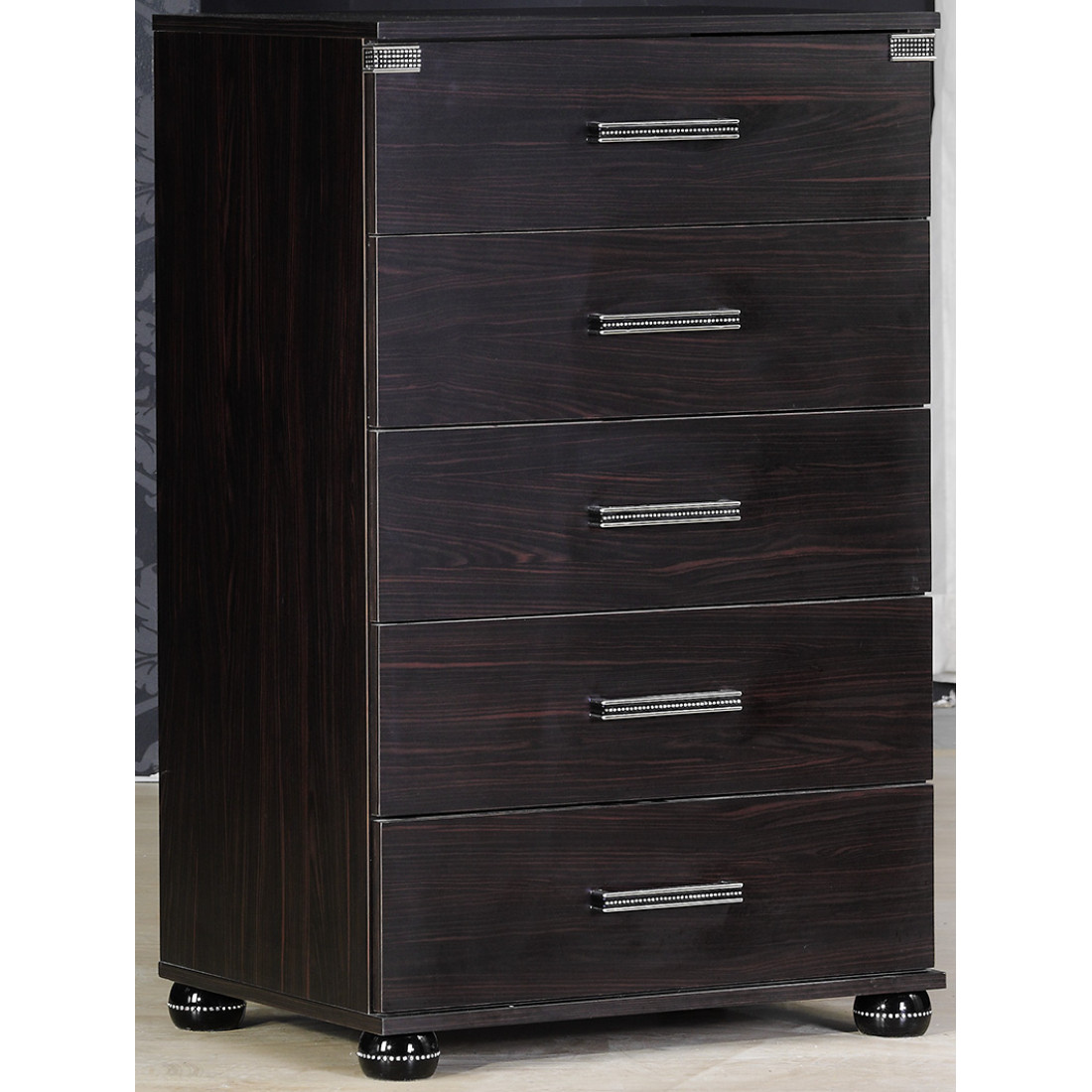 Узкий высокий бельевой комод MIRA-28 (венге) серии Мира от Беллона предлагается для обстановки интерьера спальни. Благодаря универсальной практичной конструкции и компактным размером он также способен добавить функциональности любому помещению в доме: прихожей, гостиной и библиотеке. Купить практичный комод стоит и за стильный современный дизайн: в оформлении ручек, ножек и фасадной части используются знаменитые стразы Swarovski.